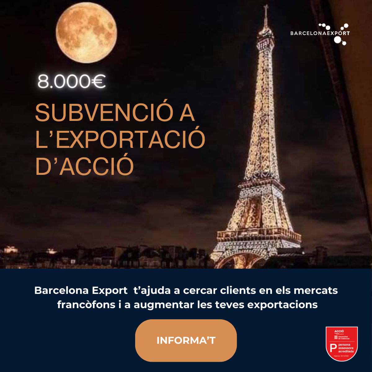 ACCIÓ és l'agència per a la competitivitat de l'agència catalana, entre els seus serveis i ajuts hi ha els Cupons d'Iniciació a l'Exportació , que tenen com a objectiu ajudar les petites i mitjanes empreses a fer passos ferms cap a l'expansió internacional. Amb una subvenció del 100% dels serveis de consultoria fins a 8.000€ [...]